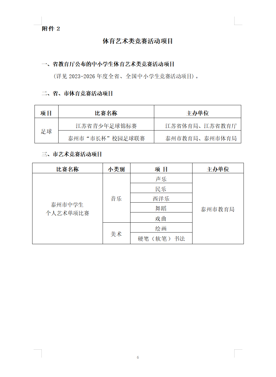 1.由国家、省、市政府举办的届运会以及江苏省教育厅公布的“省市体育竞赛活动项目”列表中未列出的江苏省体育局、江苏省教育厅、泰州市教育局、泰州市体育局举办的年度竞赛计划内赛事可以认定。